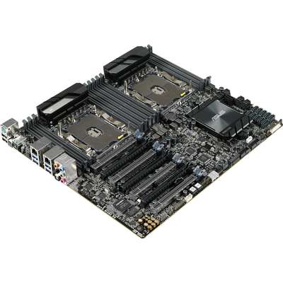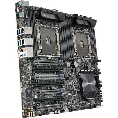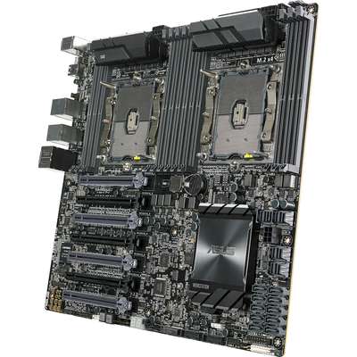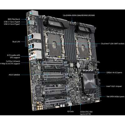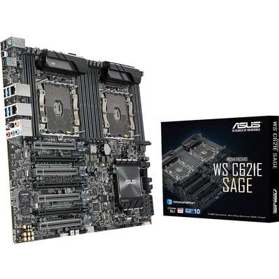 Intel® C621 motherboard with quad-strength graphics support and 12 DDR4 memory slots Up to 4-Way NVIDIA® SLI® and AMD® Crossfire X™ on demand Two-way Xeon® CPU OC tuning for extreme performance Superb scalability and connectivity with onboard U.2, M.2, and USB 3.1 Type-C and Type-A Built with premium components for excellent power efficiency Easy Management and maintenance with ASUS Control Center (ACC) management software and USB BIOS Flashback Extreme Power and Performance Up to 4-way multiple-graphic cards The Intel® C621 chipset-based dual socket workstation motherboard features on-demand NVIDIA® GeForce® SLI®, NVIDIA Quadro® SLI®, and AMD® CrossFireX™ technology. ASUS WS C621E SAGE accommodates up to four dual-width graphic cards with a four true PCIe Gen3 x16 link to unleash maximum graphic performance. With support for up to 4-way NVIDIA® GeForce® SLI®, AMD® CrossFireX™, and 2-Way NVIDIA Quadro® SLI®, WS C621E SAGE is an excellent choice for content creators, mechanical or architectural engineers, and anyone with processing- intensive workloads. Extraordinary performance with dual Intel® Xeon® CPU overclocking Dual Intel® Xeon® CPU overclocking, pushes the power processing power beyond the extreme ASUS WS C621E SAGE breaks performance barriers, giving you the capability to overclock dual Xeon® CPUs. With its unique BIOS mechanism dedicated to boosting CPU performance, WS C621E SAGE can deliver incredible system speed. Expandable and Scalable Supporting up to 12 DDR4 Error-correcting code memory (ECC Memory) Keeps your system running at a brisk pace, even when running multiple hardware-intensive programs! ASUS WS C621E SAGE supports up to 12 DDR4 error-correcting code (ECC) memory to ensure fast and responsive system performance, even when running multiple RAM-intensive applications - such as video, audio and image editing applications - simultaneously. Lightning-fast storage speed with NVMe PCIe SSD RAID 0 support With support for multiple NVMe PCIe storage devices configured as a RAID 0 array, ASUS WS C621E SAGEA lets you enjoy lightning-fast data transfers that are far beyond those provided by single drives. Super-fast transfers at up to 32Gbps with onboard four U.2 and M.2 ASUS WS C621E SAGE is built with onboard M.2 and U.2 connectors to fit both 2.5-inch NVMe and M.2 SSDs. By using the maximum PCIe Gen3.0 x4 bandwidth of 32Gbps, WS C621E SAGE enables data transfer speeds that are up to 5.3X faster than traditional storage devices. 10Gb/s USB 3.1 Gen2 onboard With backward-compatible USB 3.1 Gen2 Type-A and reversible USB 3.1 Gen2 Type-C ports, you'll experience ultimate connection flexibility and data-transfer speeds of up to 10Gb/s - twice as fast as USB 3.0 or USB 3.1 Gen1.