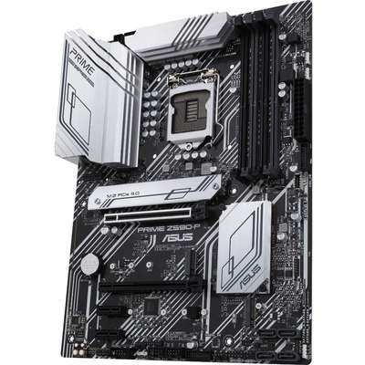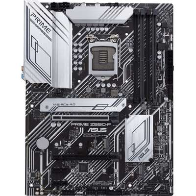 Intel® Z590 (LGA 1200) ATX motherboard with PCIe® 4.0, three M.2 slots, 11 DrMOS power stages, HDMI®, DisplayPort™, SATA 6 Gbps, 2.5 Gb Ethernet, USB 3.2 Gen 2x2 Type-C®, front panel USB 3.2 Gen 1 Type-C®, Thunderbolt™ 4 support, and Aura Sync RGB lighting Intel® LGA 1200 socket: Ready for 11th and 10th gen Intel® Core™ processors Enhanced power solution: 10+1 DrMOS power stages, six-layer PCB, 8-pin ProCool connector, alloy chokes and durable capacitors for stable power delivery Comprehensive cooling: Large VRM heatsinks, M.2 heatsink, PCH heatsink, hybrid fan headers and Fan Xpert 4 ASUS OptiMem II: Careful routing of traces and vias, plus ground layer optimizations to preserve signal integrity for improved memory overclocking Next-gen connectivity: PCIe® 4.0, 2.5 Gb Ethernet, USB 3.2 Gen 2x2 Type-C®, front panel USB 3.2 Gen 1 Type-C®, Thunderbolt™ 4 header support PRIME ASUS Prime series motherboards are expertly engineered to unleash the full potential of 10th and 11th Generation Intel® Core™ processors. Boasting a robust power design, comprehensive cooling solutions and intelligent tuning options, Prime Z590-P provides daily users and DIY PC builders a range of performance tuning options via intuitive software and firmware features. Tune It Your Way Comprehensive controls form the foundation of the ASUS Prime series. The Prime Z590 motherboard packs flexible tools to tune every aspect of your system, enabling performance tweaks to perfectly match the way you work, to maximize productivity. UEFI BIOS The renowned ASUS UEFI BIOS provides everything you need to configure, tweak and tune your system. It offers intelligently simplified options for PC DIY beginners, as well as comprehensive features for seasoned veterans. Advanced Tuning for Serious Tweakers An intuitive Advanced mode offered via the UEFI lets you take complete control. A built-in search feature makes it easy to find options, and various advanced functions let you intelligently make nuanced adjustments so you can dial in performance just the way you want. Search FunctionQuickly and easily find the option or setting you need. ASUS User ProfilePort configuration settings between different BIOS versions or share them with friends. Cool to the Core Prime Z590 series is engineered with multiple onboard heatsinks and an array of hybrid fan headers to ensure your rig stays cool and stable under intense workloads. M.2 Heatsink An M.2 heatsink takes care of the two M.2 slots, warding off throttling that can occur with M.2 storage during sustained transfers. The heatsink is held in place by captive screws and can be moved to other M.2 slot. Build on a Solid Foundation Prime Z590 series is built to handle the additional cores and increased bandwidth of 11th Generation Intel® Core™ processors. ASUS Z590 motherboards provide all the fundamentals to boost daily productivity, so your system will be ready for action with stable power, intuitive cooling and flexible transfer options. Robust Power Design Stable power is essential to extract every last bit of performance out of 11th Generation Intel® Core™ processors. Prime Z590-P is geared to cater to the demands of these high-core count CPUs. ProCool Connector Proprietary connector augment the motherboard's link to the PSU with 8-pin connector that pass 12 volts of power directly to the processors. 8-pin connector features solid pins that can handle more current than hollow-pin connector.