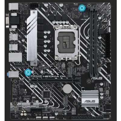 Intel® H610 (LGA 1700) mic-ATX motherboard with DDR4, PCIe 4.0, dual M.2 slots, Intel® 1 Gb Ethernet, DisplayPort, HDMI®, D-Sub, USB 3.2 Gen 2 ports, SATA 6 Gbps, Addressable Gen 2 headers, and Aura Sync Intel® LGA 1700 socket: Ready for 12th Gen Intel® processors Comprehensive cooling: VRM heatsink, PCH heatsink and Fan Xpert 2+ Ultrafast connectivity: 32Gbps M.2 slot, Intel® 1 Gb Ethernet and USB 3.2 Gen 2 ports Aura Sync RGB: Onboard addressable Gen 2 headers for RGB LED strips, easily synced with Aura Sync-capable hardware ASUS Control Center Express (ACCE) for easier IT endpoint management PRIME ASUS Prime series motherboards are expertly engineered to unleash the full potential of 12th Generation Intel® processors. Boasting a robust power design, comprehensive cooling solutions and intelligent tuning options, Prime H610 provides users and PC DIY builders a range of performance tuning options via intuitive software and firmware features. ASUS Corporate Stable ModelASUS Corporate Stable Model (CSM) is a commercial program designed to provide stable and reliable motherboards. Offering up to 36-month product lifecycle support and 6-month end-of-life notice to allow sufficient lead times for your organization to get ready for product transitions. Each purchase of an ASUS CSM motherboard comes with ASUS Control Center Express - server-grade IT management software. ASUS Control Center Express ASUS Control Center Express is an integrated IT monitoring and management software designed to deploy faster, simplify IT operations and improve productivity with comprehensive control and user-friendly functions. ASUS Control Center Express is compatible with over 100 ASUS motherboards to provide a high-quality, TCO-optimized solution for your business needs. Optimize IT endpoint managementDesigned to assist IT staff in monitoring and controlling devices within their corporate networks, and facilitate inventory checking in multiple locations remotelyAutomate IT maintenanceAllows IT staff to schedule automatic updates of the latest BIOS, software and utilities to specific or all devices at off-peak times, enhancing system stability and IT operational flexibilitySecurely manage all of endpointsSecurely manage endpoint configuration, portable storage access and PC software applications by enabling them to create grouping rules on individual devices FLEXIBILITYComprehensive controls form the foundation of the ASUS Prime series. The Prime H610 motherboard packs flexible tools to tune every aspect of your system, enabling performance tweaks to perfectly match the way you work to maximize productivity. Intelligent Control l All-Around Energy EfficiencyThe Energy Processing Unit (EPU) automatically optimizes power consumption and maximizes energy savings with Away mode - a smart setting that creates an extreme energy-saving scenario by shutting down unused I/O controllers. UEFI BIOSThe renowned ASUS UEFI BIOS provides everything you need to configure, tweak and tune your system. It offers intelligently simplified options for PC DIY beginners, as well as comprehensive features for seasoned veterans. Advanced Tuning for Serious TweakersAn intuitive Advanced mode offered via the UEFI lets you take complete control. A built-in search feature makes it easy to find options, and various advanced functions let you intelligently make nuanced adjustments so you can dial in performance just the way you want.