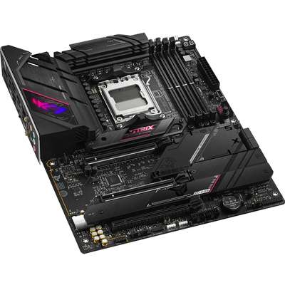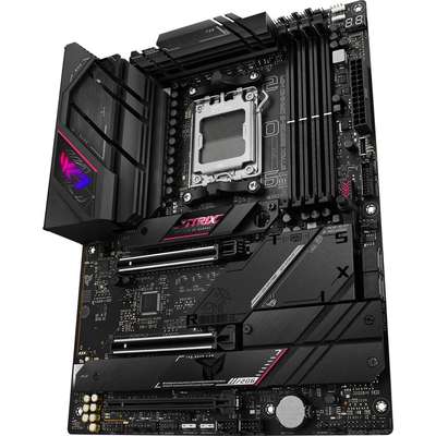 Take your build from B-tier to S with the Strix B650E-E! PCIe 5.0 and DDR5 propel your rig into the future, and innovative Q-Design features make system setup a breeze. All of its perks are backed by a tenacious power solution, hefty heatsinks, and exclusive overclocking technologies to drive you to the next level with Ryzen 7000.ALL-ROUND PERFORMANCE With its jacked up power solution, beefy VRM heatsinks, and incredible throughput to connected components, the ROG Strix B650E-E goes toe-to-toe with the greatest that Ryzen 7000 can offer. Fully embracing the new standard, the Strix B650E-E offers abundant PCIe 5.0 support to give unfettered bandwidth to the fastest SSDs and graphics cards available. Both of the x16 expansion slots are Gen 5-ready, and are protected with SafeSlot retention brackets. Two of the onboard M.2 slots are geared for blistering 16 GB/s read and write speeds courtesy of their PCIe 5.0 interfaces, while the accompanying 4.0 pair deliver still-impressive 8 GB/s transfers. And all of the M.2 slots are covered with substantial heatsinks to dispatch the heat of next-gen drives. LEADING CONNECTIVITY Backing up its core performance, the ROG Strix B650E-E packs superfast WiFi and tethered networking, as well as immersive audio courtesy of its enhanced SupremeFX solution. WIFI 6E Onboard WiFi 6E technology takes advantage of newly available spectrum in the 6 GHz band to provide up to seven 160 MHz channels for ultrafast throughput and better performance in dense wireless environments. Intel 2.5G Ethernet Low-latency gaming, speedy file transfers, and high-resolution video streaming are among the many perks of onboard Intel® 2.5 Gbps Ethernet. PLAY IN STYLE A black PCB and heatsinks match most hardware, and customizable RGB lighting furthers its flexibility. Pair the Strix B650E-E with other products from the diverse ROG ecosystem to create a fully customized gaming setup that reflects your personal style. UNDENIABLY ROG STRIX Bold and elegant, the ROG Strix B650E-E bears a premium aesthetic similar to the Electro Punk peripheral series. Black shrouds cover the SSDs and chipset with contrasting powder-coated and brushed metal textures, and playful pink accents draw the gaze around the board. The I/O shroud is emblazoned with a split image of the ROG eye, the center of which can shine with a splash of customizable RGB. SOFTWARE UTILITIES A myriad of ROG-exclusive tools put advanced system tuning and configuration at your fingertips.