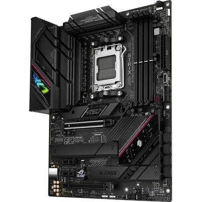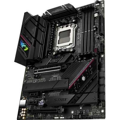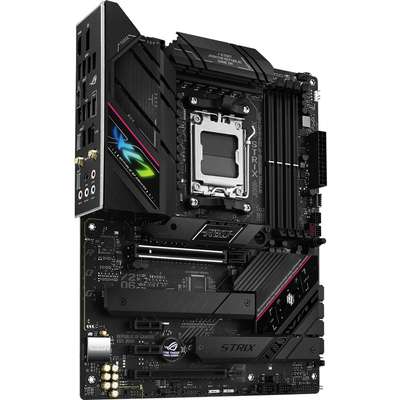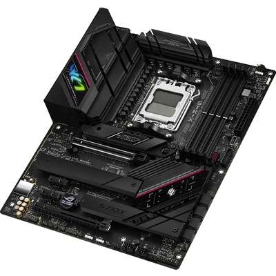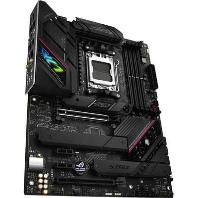 This mean machine is the heart of your next hot rod. With the stunning speed of PCIe 5.0 and WiFi 6E, hearty cooling from onboard heasinks, and advanced power design engineered for the latest Ryzen™ processors, the ROG Strix B650E-F leaves its competition in the dust. Q-LED Four onboard LEDs indicate power status and identify problems with CPU, memory, graphics card, or boot device for quick diagnosis. ALL-ROUND PERFORMANCE With robust power delivery, speedy storage and memory, and comprehensive cooling, the Strix B650E-F brings high performance to every scenario. Take advantage of future storage and GPU performance with a PCIe 5.0 and two PCIe 4.0 M.2 slots, all with robust heatsinks, and a PCIe 5.0 x16 slot that features SafeSlot for increased durability and Q-Release for easy upgrades. LEADING CONNECTIVITY The ROG Strix B650E-F delivers next-gen connectivity for ultrafast data transfers and low-latency networking. An advanced audio solution allows you to pick out the smallest cues and home in on your opponents. WIFI 6E Onboard WiFi 6E technology takes advantage of newly available spectrum in the 6 GHz band to provide up to seven 160 MHz channels for ultrafast throughput and better performance in dense wireless environments. 2.5G ETHERNET Low-latency gaming, speedy file transfers, and high-resolution video streaming are among the many perks of onboard Intel® 2.5 Gbps Ethernet PLAY IN STYLE Slick aesthetics and Aura Sync RGB controls let the ROG Strix B650E-F shine in every build. UNDENIABLY ROG STRIX An overall dark aesthetic is accented with punchy brand-centric details and a logo that glows with fully-customizable RGB lighting. A meld of form and function is illustrated by a cut-out I/O shield, which allows additional airflow to pass through the VRM heatsink channels below. Pair the Strix B650E-F with other products from the diverse ROG ecosystem to create a fully customized gaming setup that reflects your personal style. SOFTWARE UTILITIES A myriad of ROG-exclusive tools put advanced system tuning and configuration at your fingertips. TWO-WAY AI NOISE CANCELATION This utility leverages a massive deep-learning database to reduce over 5 million types of background noise from incoming or outgoing audio, helping ensure crystal-clear communication in games or calls. THIS CHANGES EVERYTHING.FROM THIS NEW PLATFORM, YOU CAN SEE THE FUTURE Build your next rig with an AMD Ryzen™ 7000 Series processor and ROG Strix B650E-F Gaming WiFi to experience advanced performance. With up to 16 "Zen 4" cores and 32 threads, boost clocks of up to 5.7GHz, and 80MB cache, the AMD Ryzen™ 7000 Series keeps you ahead of the game. You'll also gain access to new features for gamers with AMD Socket AM5, from the speed of DDR5 memory to the increased bandwidth of PCIe® 5.0. AMD Ryzen™ 7000 Series processors and AMD socket AM5 motherboards are unlocked for overclocking to personalize your experience. Gain even more performance when you overclock your DDR5 memory with AMD EXPO™ technology.