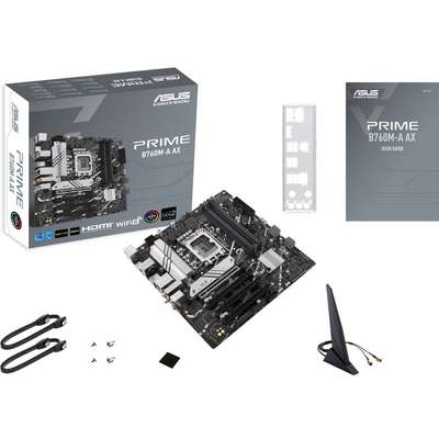 ASUS Prime series motherboards are expertly engineered to unleash the full potential of 13th Gen Intel® Core™ Processors. Boasting a robust power design, comprehensive cooling solutions and intelligent tuning options, PRIME B760M-A AX provides users and PC DIY builders with a range of performance optimizations via intuitive software and firmware features. FLEXIBILITYComprehensive controls form the foundation of the ASUS PRIME series. The PRIME B760 motherboard packs flexible tools to tune every aspect of your system, enabling performance tweaks to perfectly match the way you work to maximize productivity. Intelligent Control UEFI BIOS Intelligent ControlASUS Intelligent Control makes your PC smart. Along with taking care of complex tuning and dynamically optimizing essential aspects of your system, it offers intelligently simplified options for newcomers to PC DIY, as well as more comprehensive features for seasoned veterans. All-Around Energy EfficiencyThe Power Saving function contains several settings can easily optimize power consumption and maximize energy savings. You can enable a CPU power limit, darken Aura lighting, and set the fan profile to a power saving mode. You can also toggle the Power Saver plan that is built into Microsoft Windows. COOLINGPRIME B760 series are engineered with multiple onboard heatsinks and an array of hybrid fan headers to ensure your rig stays cool and stable under intense workloads. M.2 HeatsinkM.2 heatsink wards off throttling that can occur with M.2 storage during sustained transfers. The heatsink is held in place by captive screws, and these removable captive screws help reduce risk of drops or loss during heatsink removal. PERFORMANCEThe PRIME B760 series are built to handle the high core counts and bandwidth demands of 13th Gen Intel® Core™ Processors. ASUS B760 motherboard provides all the fundamentals to boost daily productivity, so your system will be ready for action with stable power, intuitive cooling and flexible data transfer options. Robust Power DesignStable power is essential to extract every last bit of performance out of Intel® processors. The PRIME B760M-A AX is geared to cater to the demands of these high-core-count CPUs. ProCool ConnectorProprietary connectors augment the motherboard's link to the PSU with 8 pin connectors that pass 12 volts of power directly to the processors. Each jack features solid pins that can handle more current than hollow-pin connectors