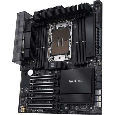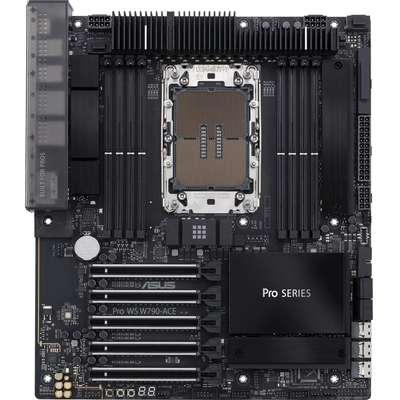 Performance, Productivity, Proven The Pro WS W790 series workstation motherboard is deftly tailored for creative professionals, developers and engineers, unleashing the dominate performance of the latest Intel Xeon processors, with CPU and memory overclocking capability. Featuring an optimized memory trace layout, advanced power stage design, server-grade IPMI remote management, and ultrafast PCIe 5.0 and networking connectivity, Pro WS W790 series melds no-compromise engineering with incredible aesthetics. ASUS W790 motherboards go above and beyond the ordinary with a painstakingly cultivated collection of hardware validations to help ensure that your workstation build supports a wide variety of memory, cooler, chassis, PSU and other devices. Learn more about the Qualified Vendor List. Low-profile professionalism With metallic black aluminum extrusions, stainless steel black mesh with highlighted details, and a transparent smoky gray I/O cover, Pro WS W790-ACE presents a professional, low-profile look for content creators. Multi-GPU support The Pro WS W790-ACE features five PCIe 5.0 x16 slots for high-powered graphics cards, enabling enhanced performance for professional design, modeling, simulation and rendering applications. Reliability with supreme memory overclocking The Pro WS W790-ACE supports 4-channel 2DPC DDR5 RDIMM ECC memory, allowing automatically to detect and correct data corruption, reducing the chance of system crashes. Being infused with deliberate memory trace layout, this motherboard enables DDR5 memory overclocking with maxed-out speeds to provide better memory performance for a diverse range of workloads.