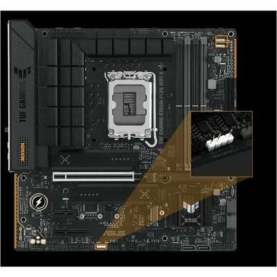 TUF GAMING B760M-PLUS WIFI IITUF GAMING B760M-PLUS WIFI II takes all the essential elements of the latest Intel®processors and combines them with game-ready features and proven durability. Engineered with military-grade components, an upgraded power solution and a comprehensive cooling system, this motherboard goes beyond expectations with rock-solid performance for marathon gaming. TUF GAMING motherboards also undergo rigorous endurance testing to ensure that they can handle conditions where others may fail. Aesthetically, this model incorporates an embossed nameplate and geometric design elements to reflect the dependability and stability that defines the TUF GAMING series.INTELLIGENT CONTROLThe TUF GAMING B760M motherboards pack flexible tools to tune every aspect of your system, enabling performance tweaks to expertly match the way you play.POWER SAVING | All-Around Energy EfficiencyThe Power Saving function contains several settings that can easily optimize power consumption and maximize energy savings. You can enable a CPU power limit, darken Aura lighting, and set the fan profile to a power saving mode. You can also toggle the Power Saver plan that is built into Microsoft Windows.UEFI BIOSThe renowned ASUS UEFI BIOS provides everything you need to configure, tweak and tune your system. It offers intelligently simplified options for PC DIY beginners and comprehensive features for seasoned veterans.Armoury CrateThe ASUS-exclusive Armoury Crate software centralizes control of all supported gaming products. A single intuitive interface lets you customize RGB lighting for all compatible devices and link them to Aura Sync for unified illumination. It also displays information from, and enables control of, a growing hardware ecosystem. Armoury Crate also enables easy product registration and features a news section to keep you in touch with the gaming community.ROCK-SOLID PERFORMANCEWith upgraded power delivery and comprehensive cooling options to fuel the latest Intel CPUs, plus support for DDR5 memory and PCIe 4.0 storage, the TUF GAMING B760M-PLUS WIFI II is the perfect foundation for your next Intel battle rig.POWER DESIGN | Premium Power Delivery12+1+1 power stages are each rated to handle up to 50 amperes, combining high-side and low-side MOSFETS and drivers into a single package to deliver power, efficiency and stable performance for all compatible Intel processors.Six-Layer PCB DesignThe multi-layered printed circuit board design quickly dissipates heat around the voltage regulators to improve overall system stability and provide the CPU with more overclocking headroom.8+8 PIN ProCool Power ConnectorsCompared to traditional power inputs, ASUS ProCool connectors are built to tight specifications to ensure full contact with PSU power cables. The resulting lower impedance helps prevent hotspots and connector failure.TUF Components | TUF ChokesCertified military-grade TUF chokes deliver rock-solid power to the CPU, improving system stability.TUF CapacitorsThe TUF 5K black metallic capacitors provide 52% wider temperature tolerance and a 2.5X-longer lifespan than standard motherboard capacitors.Digi+ VRMThe integrated Digi+ voltage-regulator module (VRM) is one of the finest in the industry, optimized for ultra-smooth and ultra-clean power delivery to the CPU at all times.