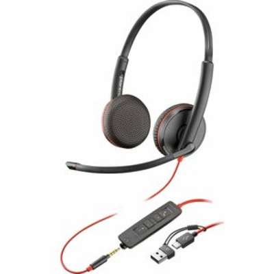 Product Name: HP Poly Blackwire 3225 Stereo USB-C Headset + 3.5mm Plug + USB-C/A Adapter