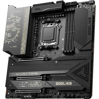 MEG X670E GODLIKEThe MEG X670E GODLIKE is designed with a black and heavy heatsink which comes with dark mirror and time carving design in pale gold illuminating that symbolizes the timeless form and function as well as representing perfection in its purest form. Featuring the latest technology, high-speed transmission, ultra-performance, and Industry's first M-Vision Dashboard, the MEG X670E GODLIKE is developed to unleash the extreme gaming potential of the AMD X670 chipset and is ready to rule the tournament once again. LATEST DDR5 MEMORY Take a huge step of DDR performance upgrade with the latest DDR5 memory. Combining the dedicated SMT welding process and with MSI memory boost technology, the MEG X670E GODLIKE is ready to deliver world-class memory performance. LIGHTNING GEN 5 The latest and the fastest PCI-e data transfer solution can reach 128GB/s of unidirectional transfer bandwidth of a x16 interface that has doubled compared to its previous generation. Optimized by Steel Armor design and server grade PCB, you can enjoy next-gen devices without any compromise.