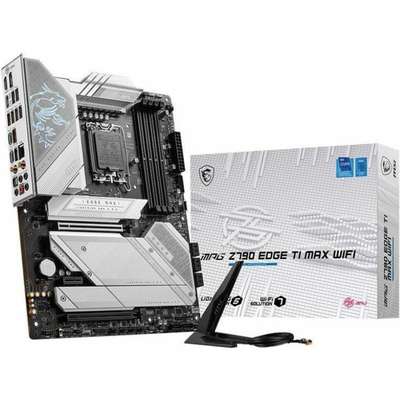 TOOL-FREE M.2 INSTALLATION Industrial first Magnetic with patented Screwless M.2 Shield Frozr & EZ M.2 Clip provide the easiest way for M.2 InstallationMPG Z790 EDGE TI MAX WIFI is covered with a silver-white color scheme for white PC build lovers to show off different personalities. It is also powerful because it features Wi-Fi 7 solution, an optimized DDR5 circuit, and the latest PCIe 5.0 M.2 with Screwless M.2 Shield Frozr, and this is the best white Z790 ATX motherboard for Intel® next Gen and 13th Gen Core processors.The MPG series brings out fashionable products by showing extremely unique styles and expressing a conceited attitude towards the challenge of the gaming world. With extraordinary performance and style, the MPG series defines the future of gaming fashion. Extended Heatsink Extended Heatsink enlarges the surface of heat dissipation, ensuring even high-end processors to run in full speed. Direct Touch Heat-pipe Connecting two MOS heatsinks to enlarge the surface of heat dissipation. M.2 Shield Frozr Keeps M.2 SSDs safe while preventing throttling, making them run faster. 7W/mK Thermal Pad High quality 7W/mK MOSFET thermal pads and extra choke thermal pads ensure all cores running in high performance. Enhanced M.2 Thermal Double-sided M.2 Shield Frozr and Enlarged heatsink desing keep PCIe 5.0 M.2 SSD safe while preventing throttling. Enlarged PCH Heatsink The enlarged heatsink design to reduce dust and noise as well as maintain high heat dissipation efficiency.